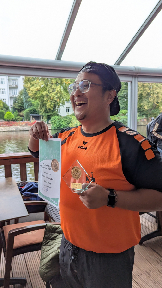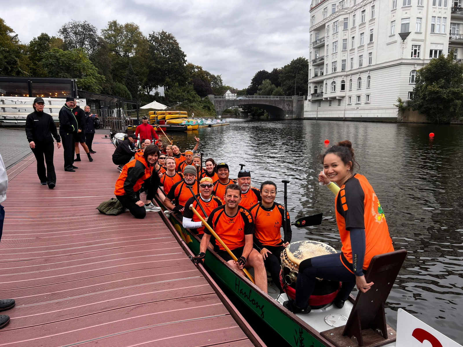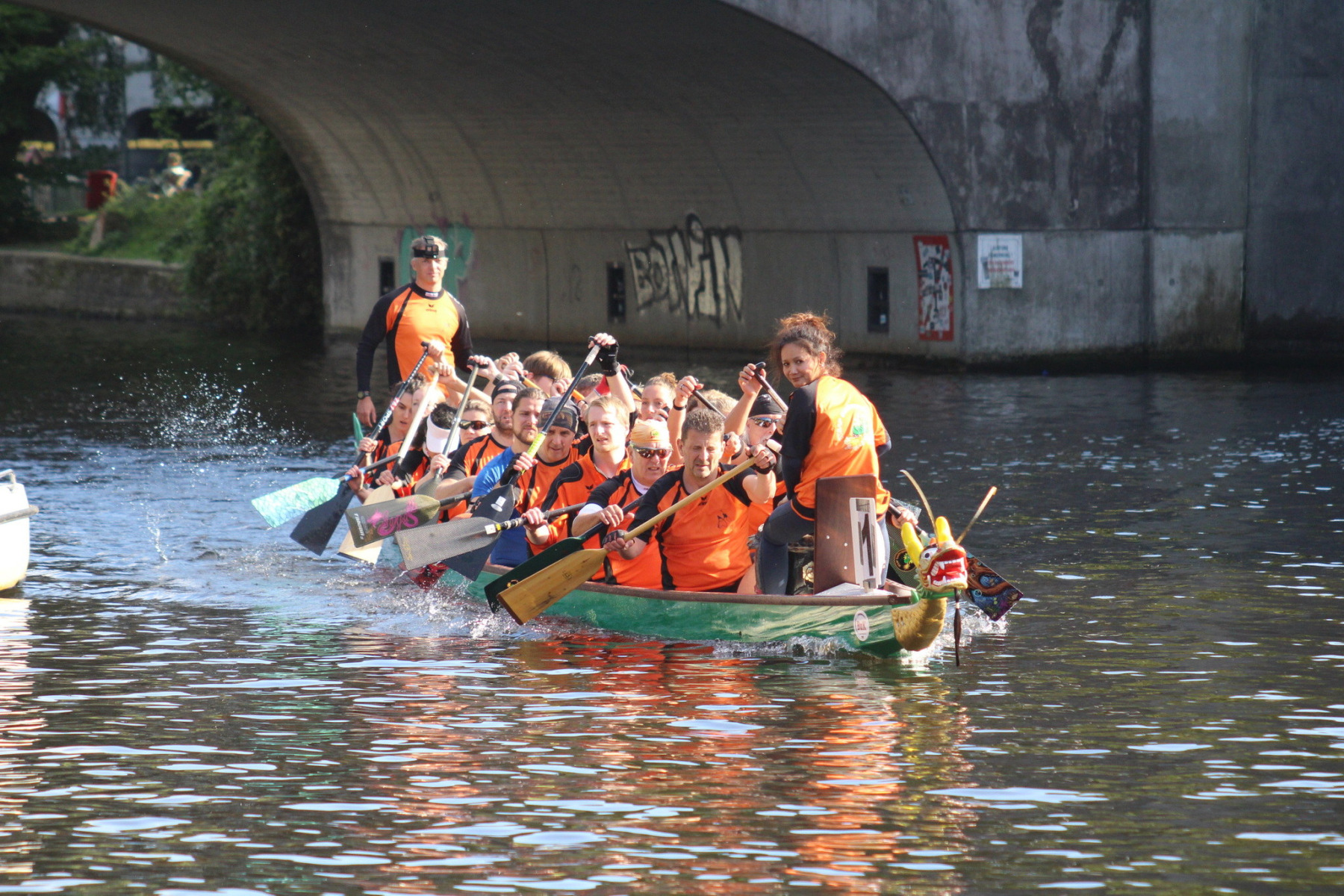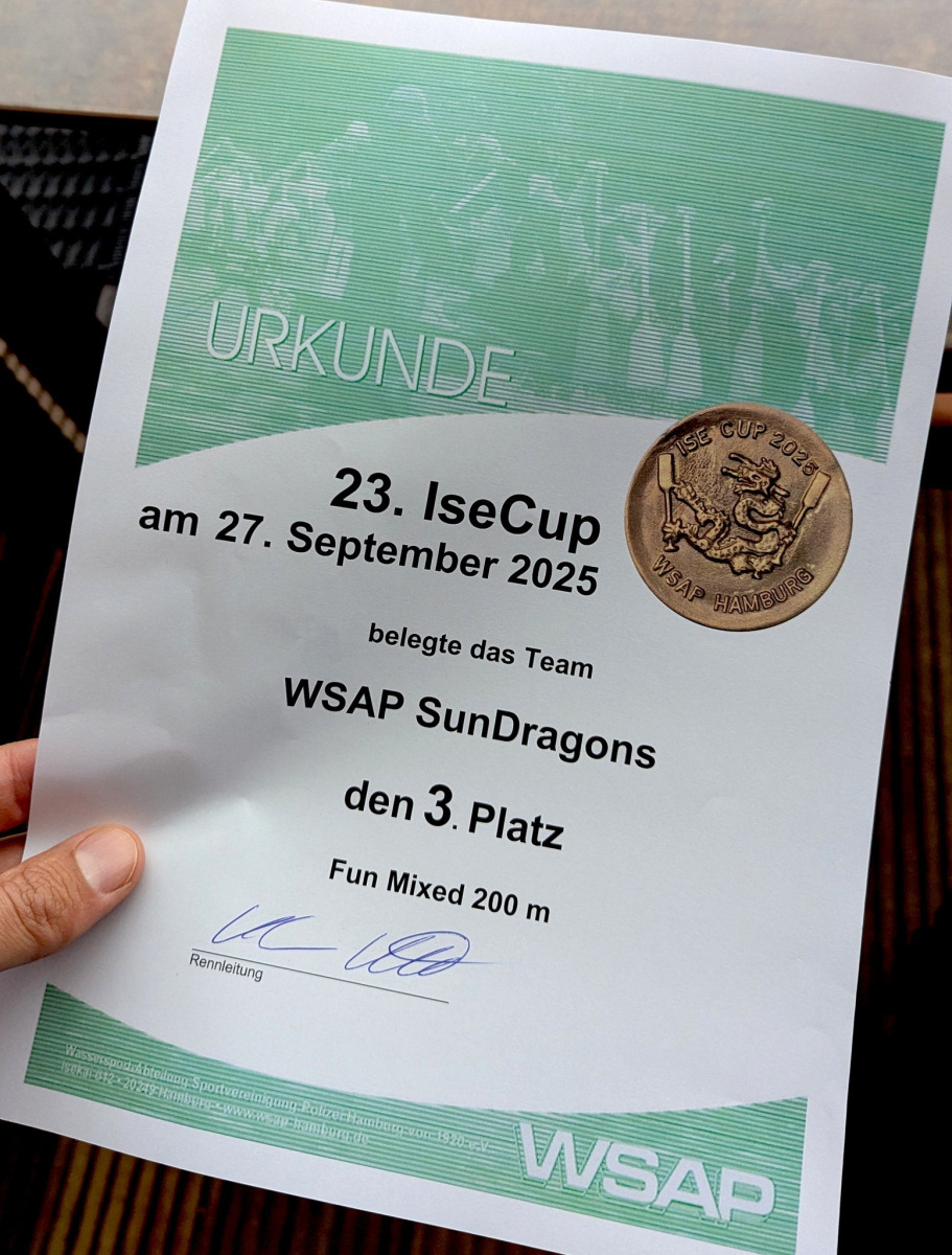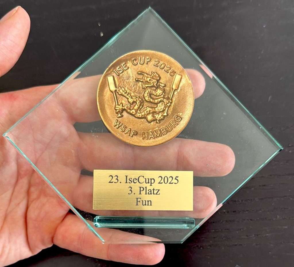 Nach zwei Jahren endlich wieder IseCup und voller Premieren! Damals noch mit einem anderen Team als Partner, sind wir seitdem stark gewachsen. Deswegen konnten wir dieses Mal endlich allein aus eigener Kraft starten: 20 eigene Paddler, 1 eigener Trommler und ein eigener Steuermann!