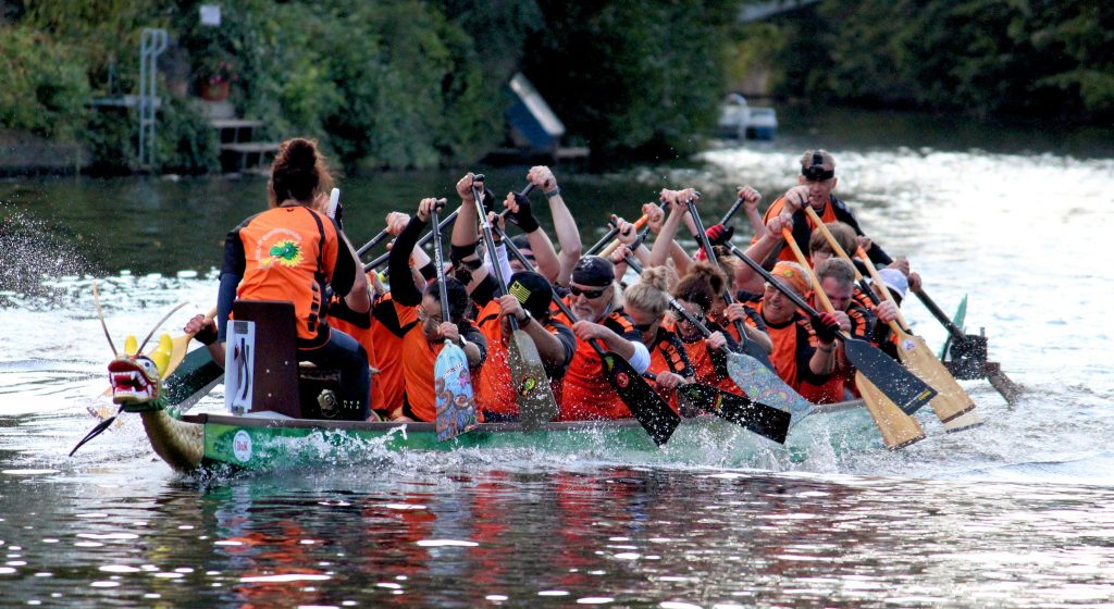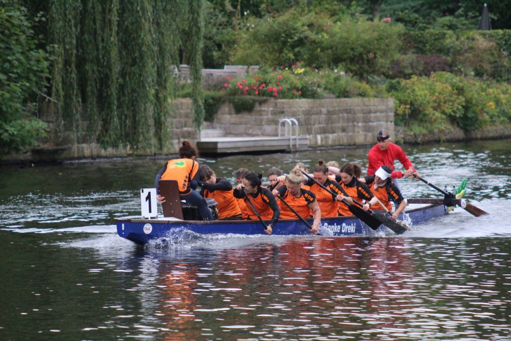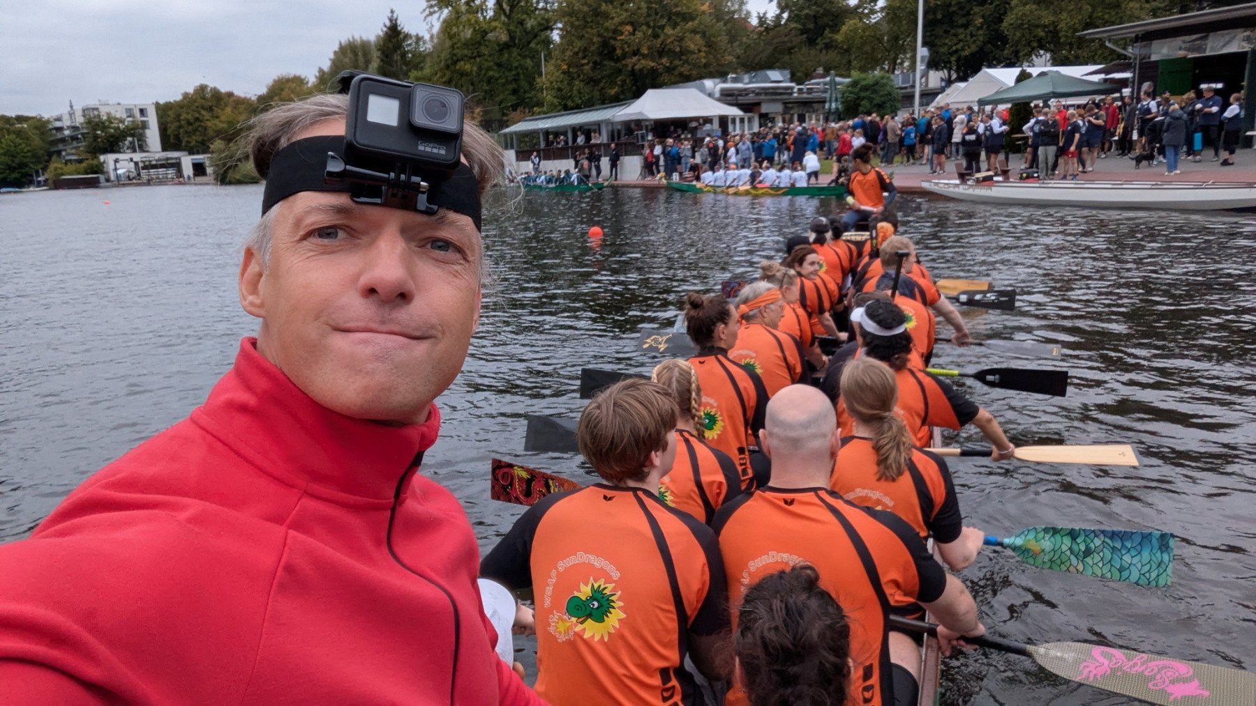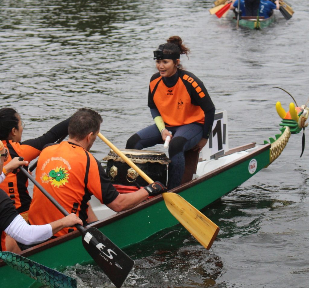 Aber nicht nur für einige Paddler war es eine Premiere. Sondern auch für die Trommlerin – grade mal zwei Wochen vorher das erste Mal im Drachenboot und schon zum Trommeln angestiftet.