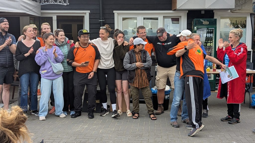Aber so richtig stolz sind wir mindestens auf diesen gelungenen Endspurt: bei dem wir kurz vorm Ziel alle Kraft entfalteten und jeder Zug uns an den Caipiranhas vorbei schob. Da half ihnen auch kein Anfeuern mehr!!