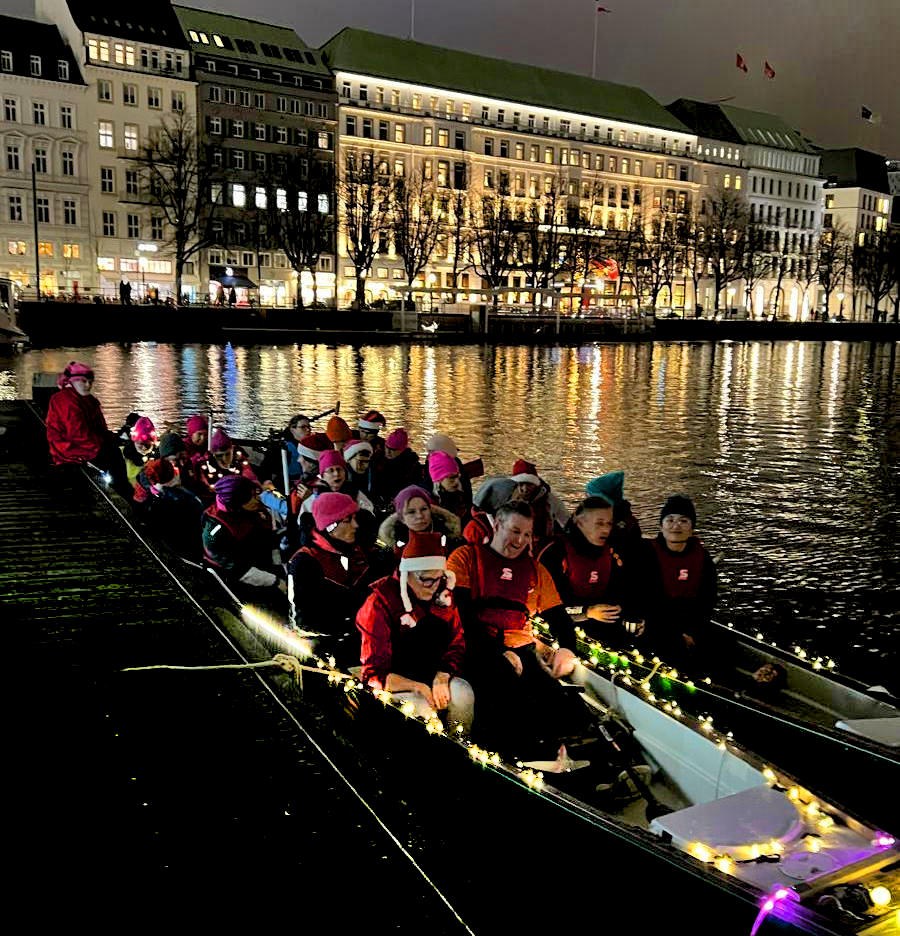 Mit dieser Fahrt endet für die Pinkies die Drachenboot-Saison auf dem Wasser. Jetzt geht es für sie ins Wintertraining, also in den wöchentlichen Kraftraum. Ein bisschen wie bei den Hamburger Schwänen, die im Winter auch in die Box müssen.