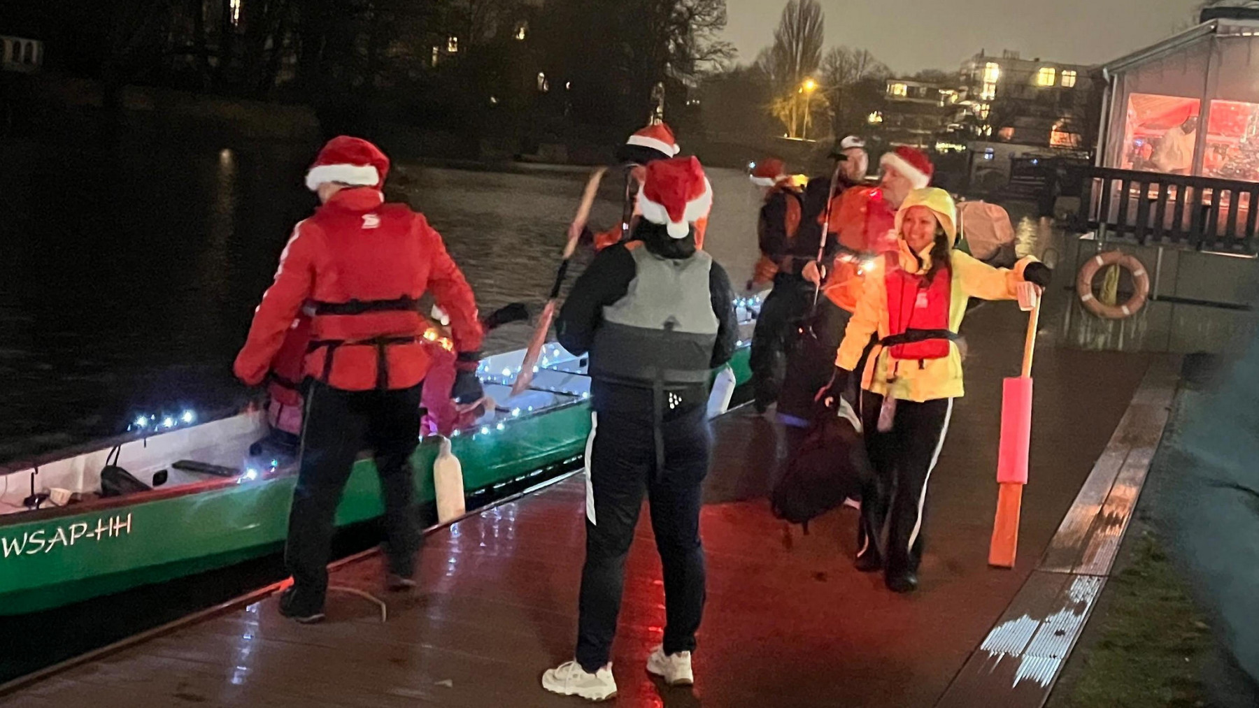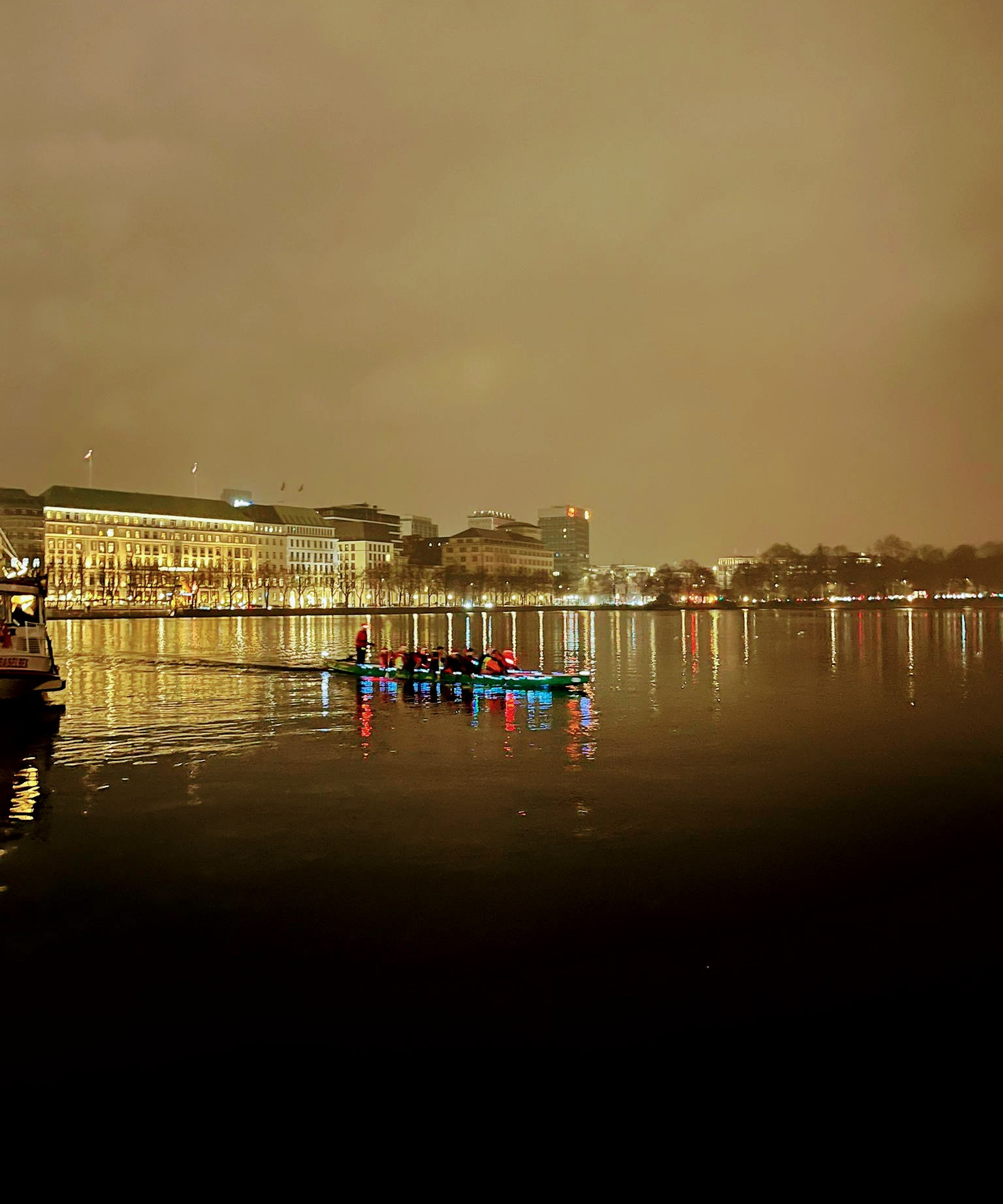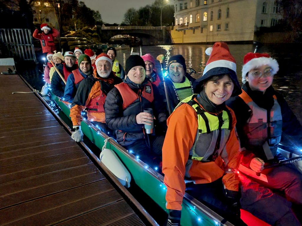 Dieses Jahr haben sich neben den Ruderern des WSAP auch wir, die SunDragons, angeschlossen. Mit beleuchtetem Boot, voller Mannschaft, Musik an Bord sowie reichlich Glühwein und Snacks sind wir gemeinsam auf die Alster hinausgefahren.