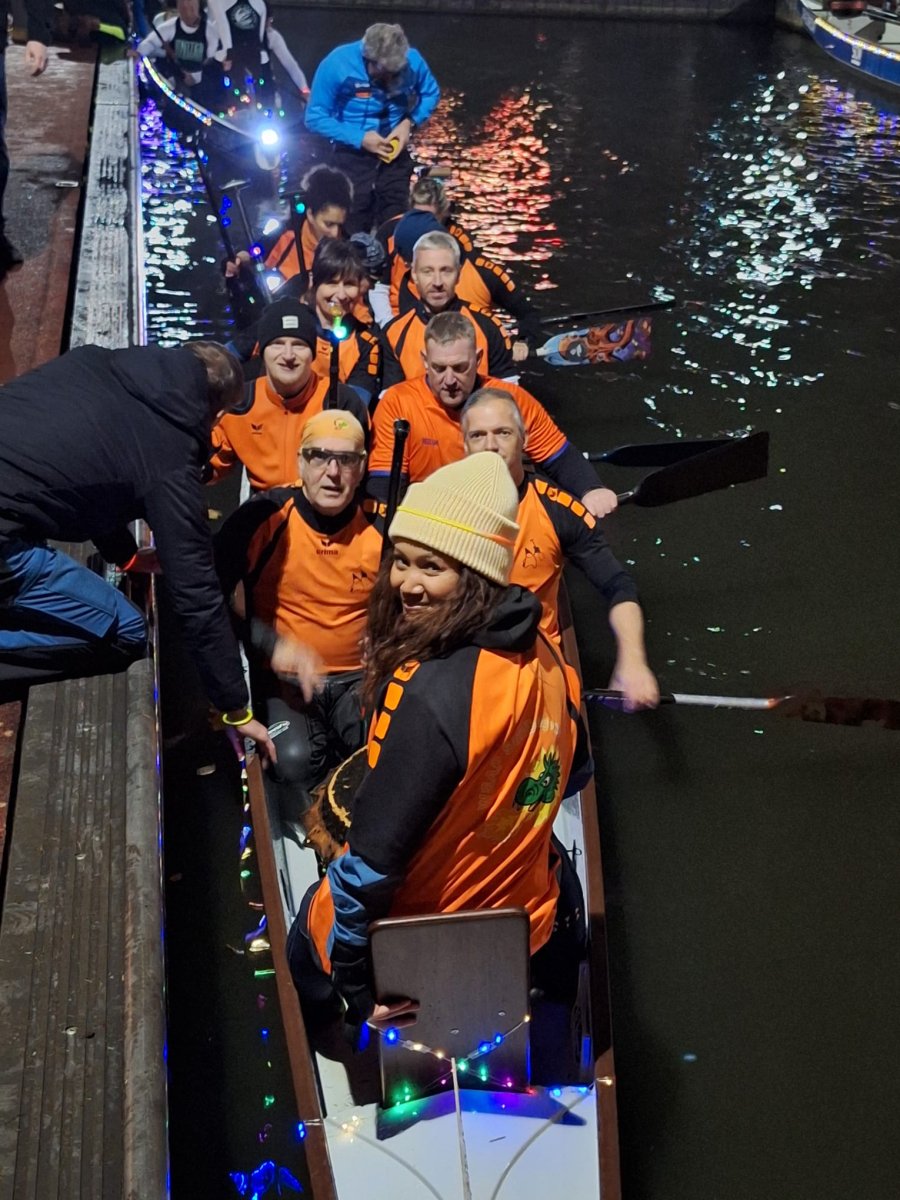 Als Steuermann hatten wir Dietmar, Kristans Trainer von den Baltic Dragons – eine sicherere Wette bei jedem Rennen.